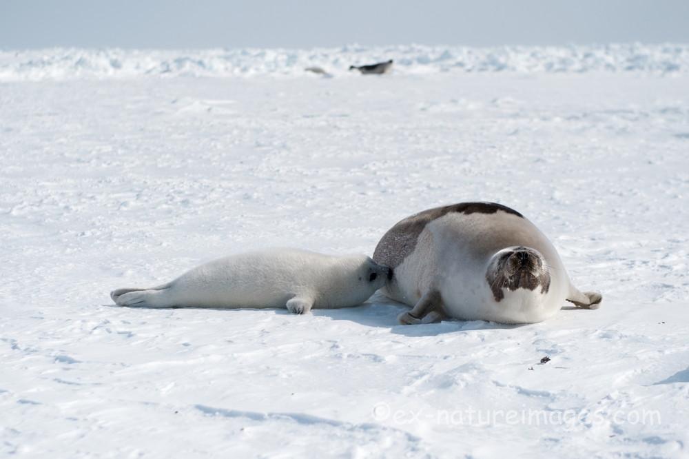 お食事中の真っ白な赤ちゃんアザラシ