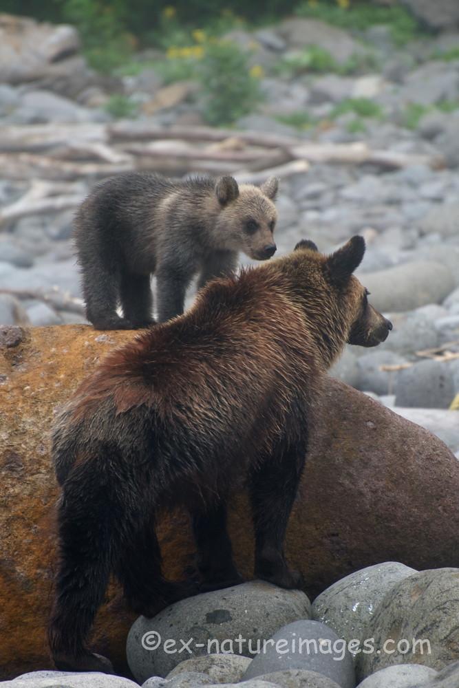 何かを見ているクマの家族②