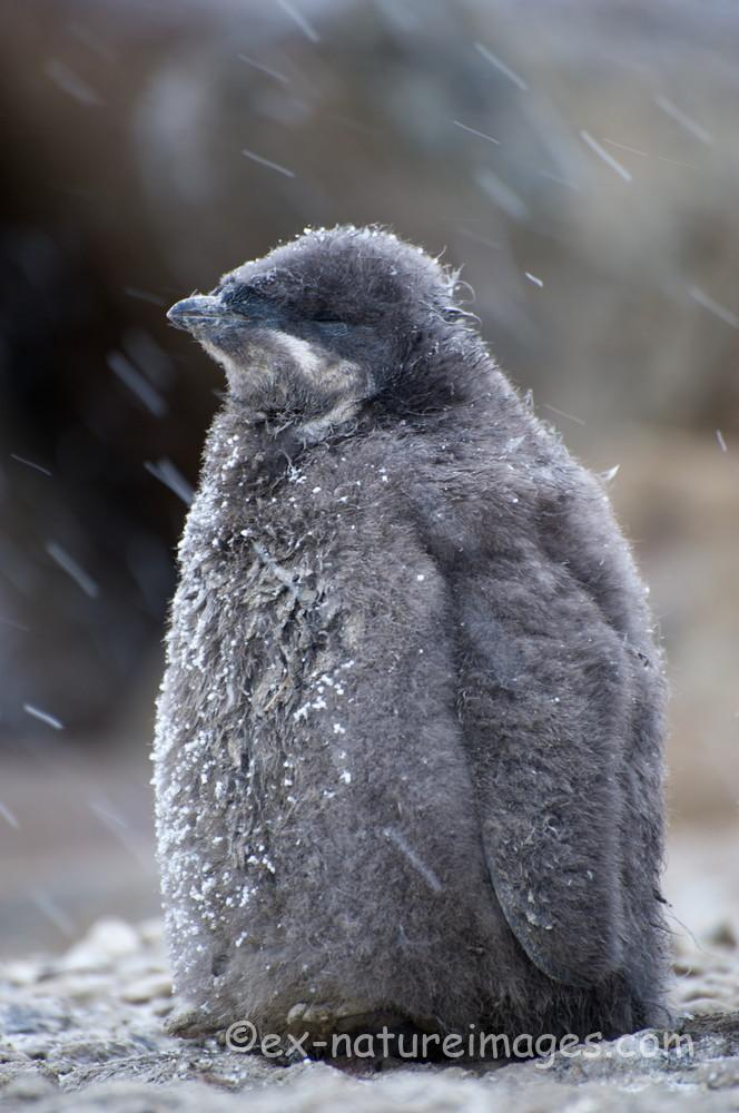 赤ちゃんペンギン 雪にも負けません