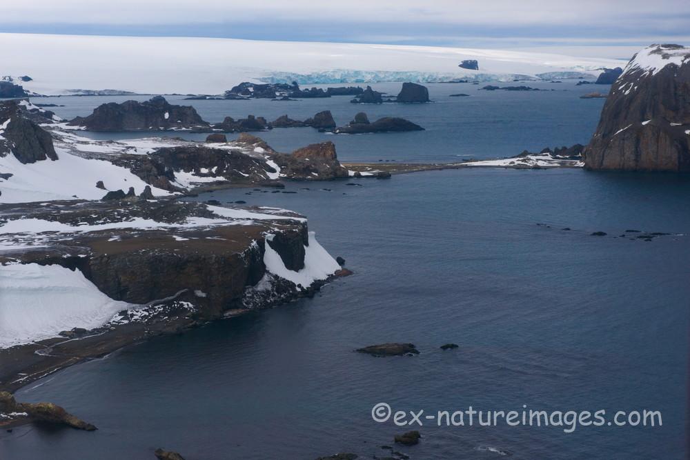 所々雪が解けた海岸